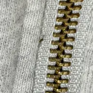 ジッパー付近に止まっている極めて小さなハエの仲間です。